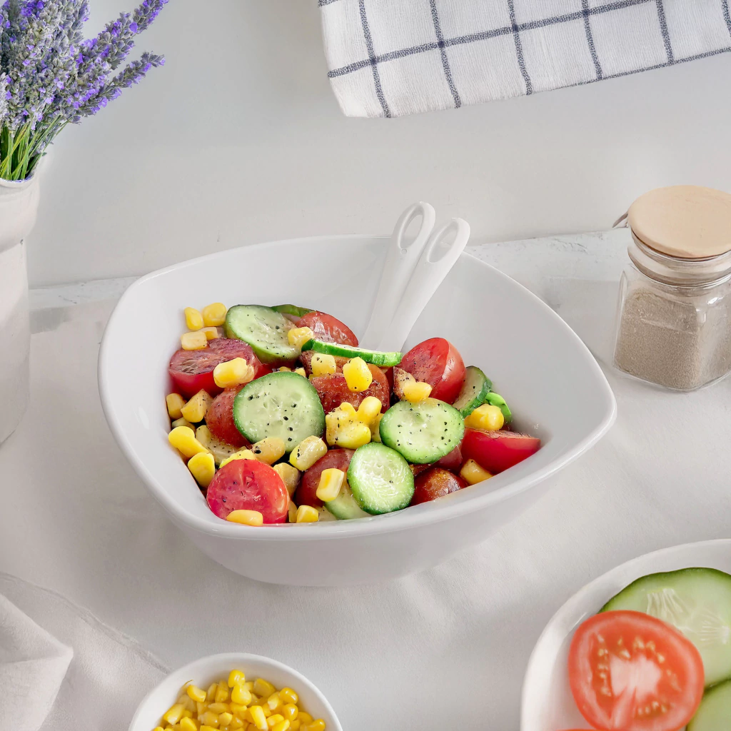 Bowl Ensaladera Grande Cuadrada de Acrílico + Cuchara y Tenedor de acrílico haciendo juego.