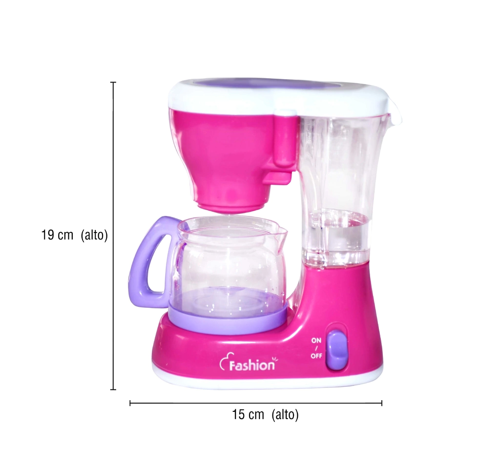 Mini Cafetera "Kitchen Set" a pilas, con sonido real, se puede colocar agua y filtra como una cafetera real. Muy fácil de usar.