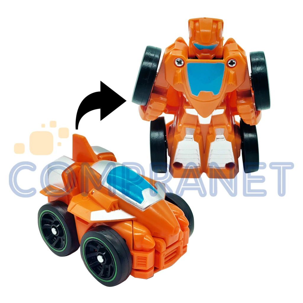 Pista Max Robot con lanzador que impulsará el auto a una gran velocidad para que traspase la boca del dinosaurio. Incluye un auto transformable, se puede usar como auto o como robot.